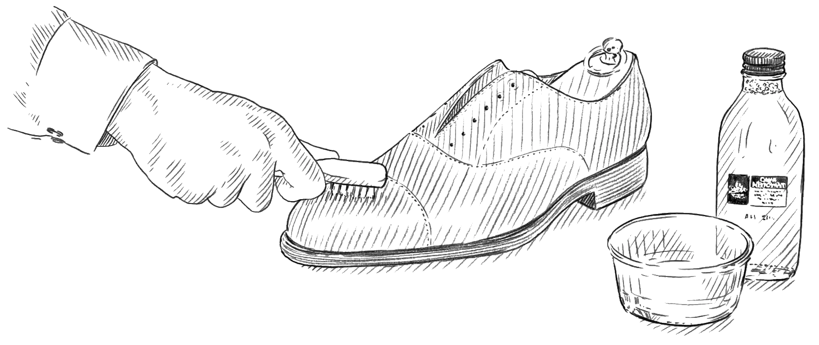 Verwijder voorzichtig vuil of stof van de schoen met een crêpeborstel.